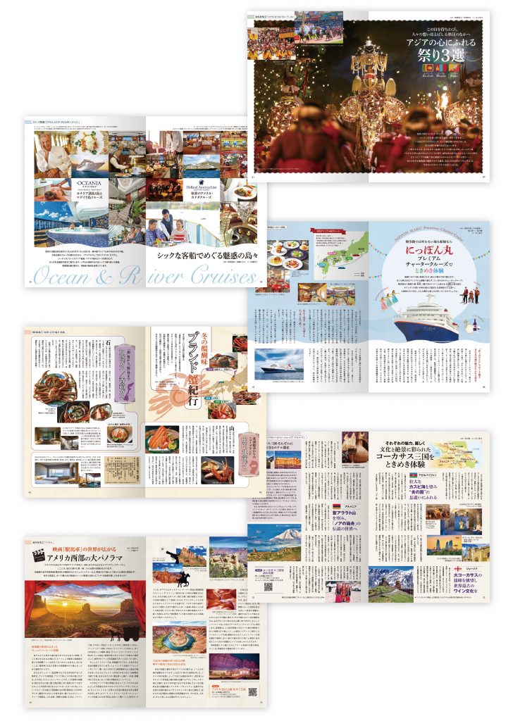 すべては、それぞれのツアー企画担当者に取材をすることからはじまります。記事は単なるツアー紹介にとどまらず、歴史や文化、景観、食などのテーマに即した誌面に。創刊500号を機に、ロゴ・レイアウトデザインもリニューアル。